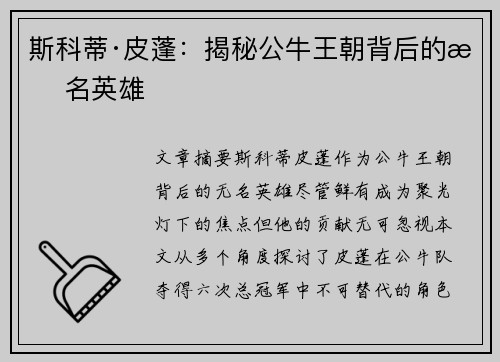 波士顿凯尔特人是NBA历史上最具传奇色彩的球队之一,其辉煌的历史和丰富的荣誉积淀,成为篮球界的一部分。然而,随着时间的推移,凯尔特人也经历了起伏与挑战。近年来,球队逐渐找回了往日的光辉,重返了争夺总冠军的行列。本文将从多个维度探讨波士顿凯尔特人如何在新的时代背景下重返辉煌,继续书写他们的NBA传奇历...